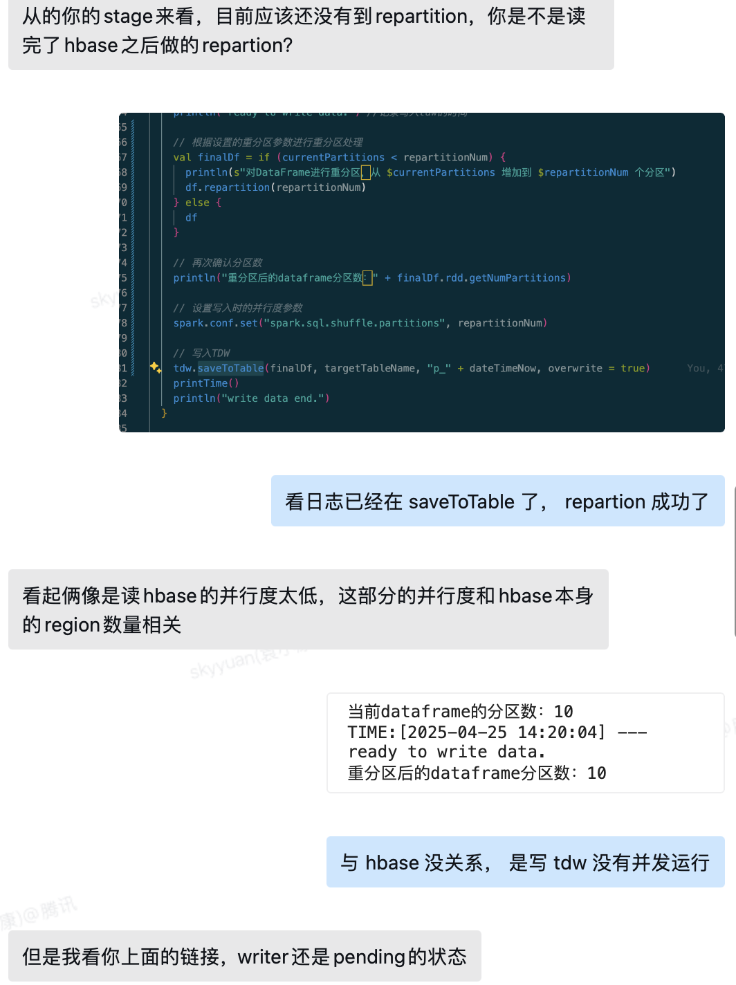 那一切都清晰了,优化方向就是写 hive 前,主动进行 repartition 提升分区的个数。