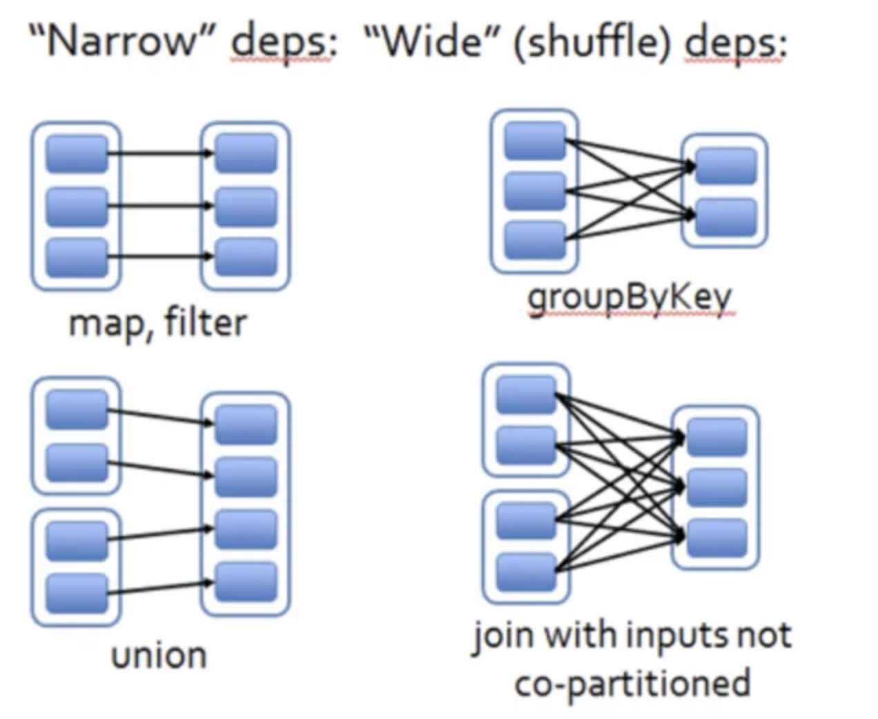 另外,Transformation 也分为窄依赖和宽依赖,主要是看是否有 shuffle 操作。