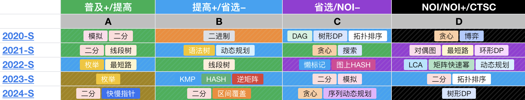 这篇文章打算统计一下 CSP-S 的算法题型。
